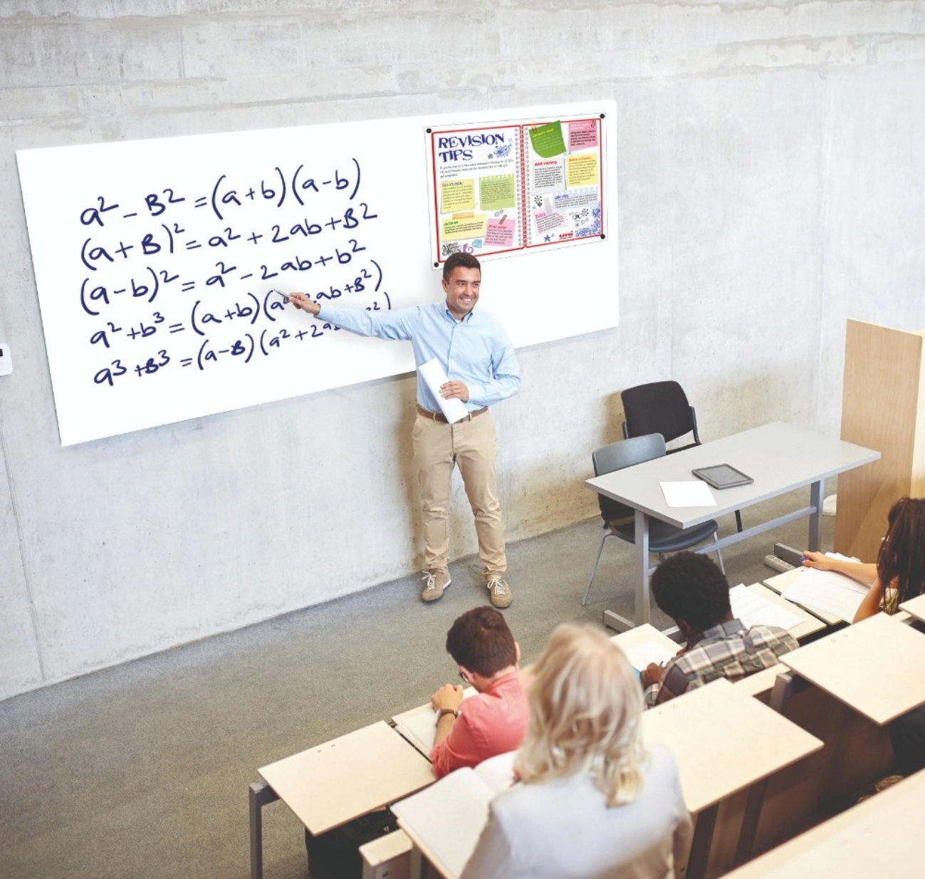 Double-sided whiteboards that can pivot to the desired angle. Enables both surfaces to be angled towards the audience. Range of 5 sizes up to 1.8m wide. Simple self-assembly. for use with drywipe pens.