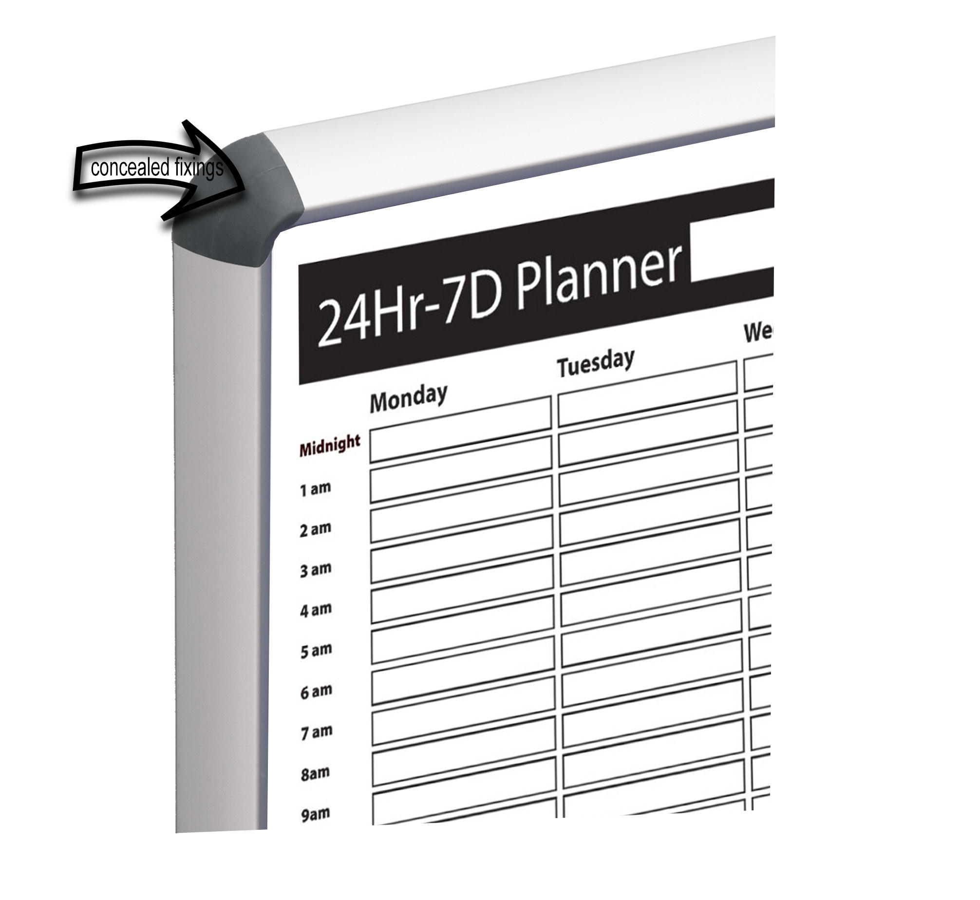 - Manufactured with our smart Shield Frame profile, in aluminium, the board surface is a coated steel to also accept magnets.