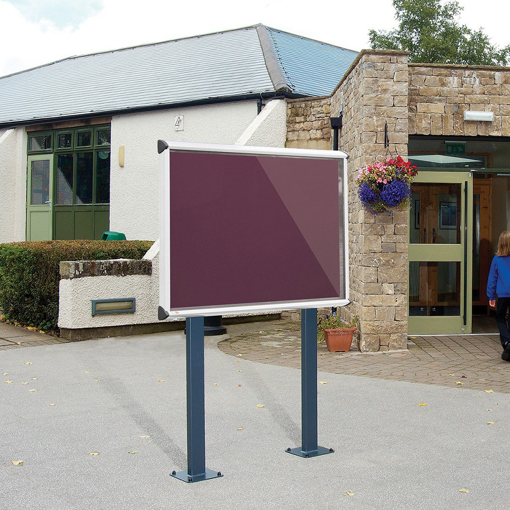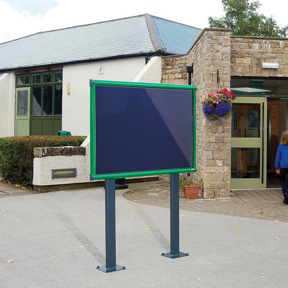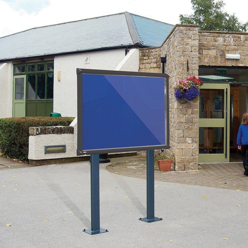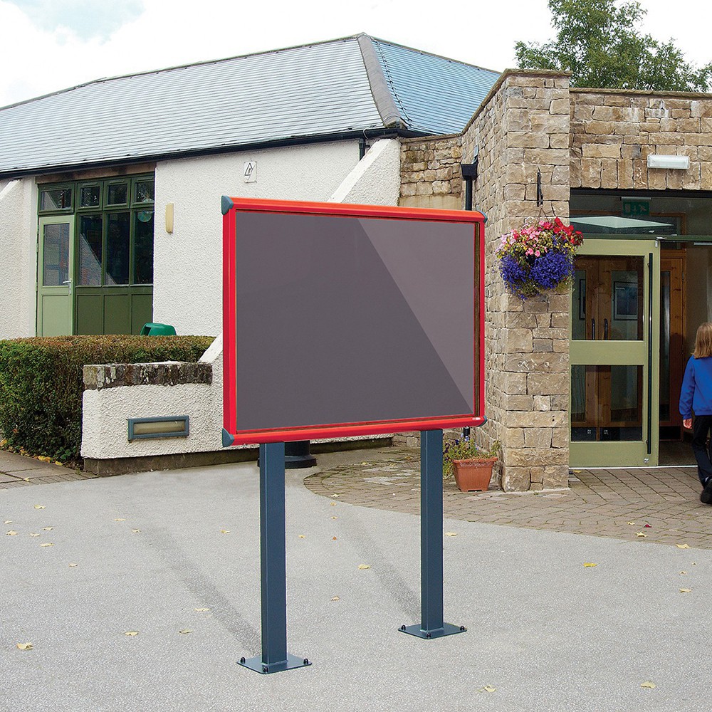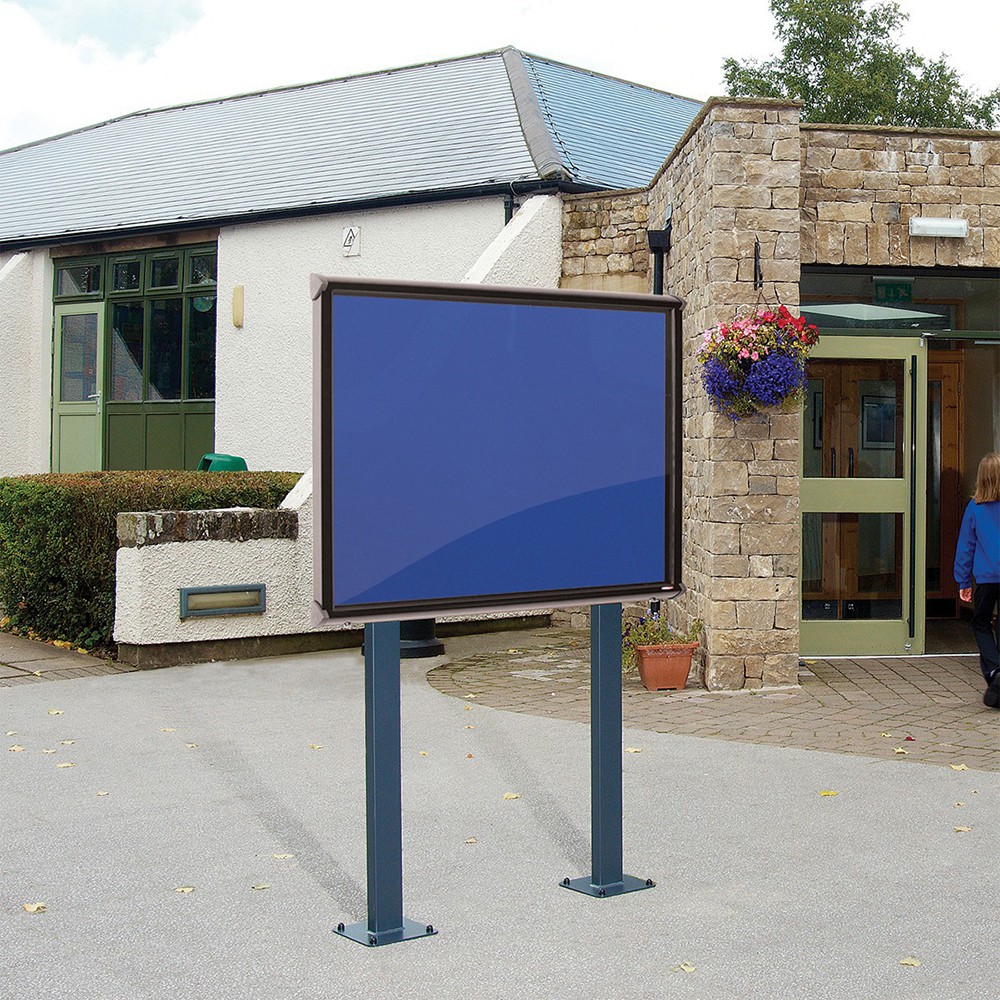 • This new frame finish offers a traditional look and feel but without the maintenance requirements that a wood product would require. This post mounted showcase features a powder coated steel backing plate for rear weatherproofing and is supplied complete with powder coated heavy duty galvanised steel posts for securing with bolts to a concrete surface.