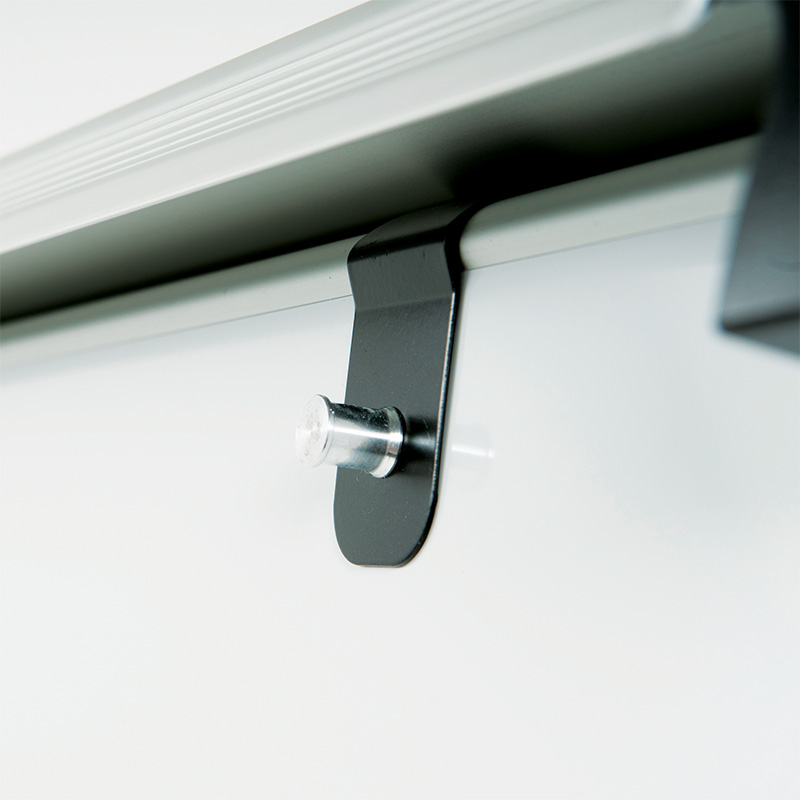 - Integral side arm with paper clips can be mounted to left or right, for hanging completed sheets.